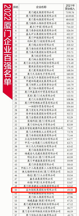 位列厦企百强第50位